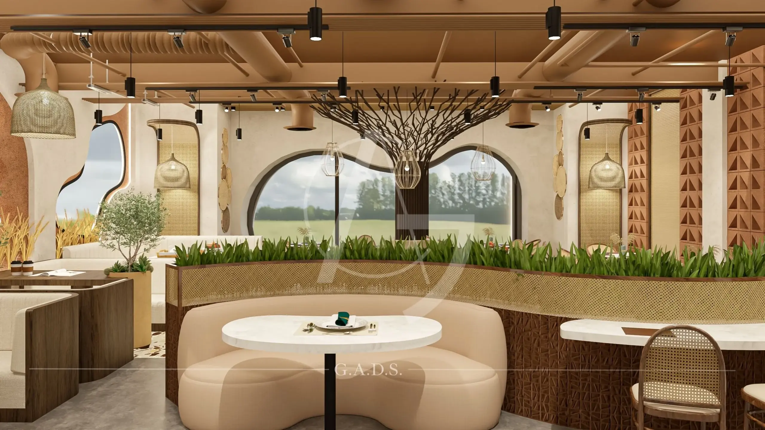 Welcome to a world where nature meets nourishment. At Farm to Folk Café, design isn’t just about aesthetics — it’s about evoking a sense of belonging to the earth. Inspired by the essence of farm life, the café brings together raw textures, natural materials, and organic forms, creating a space that feels both timeless and inviting. Every corner has been thoughtfully designed to blend earthy architecture with contemporary function — a place where rustic charm meets modern hospitality.