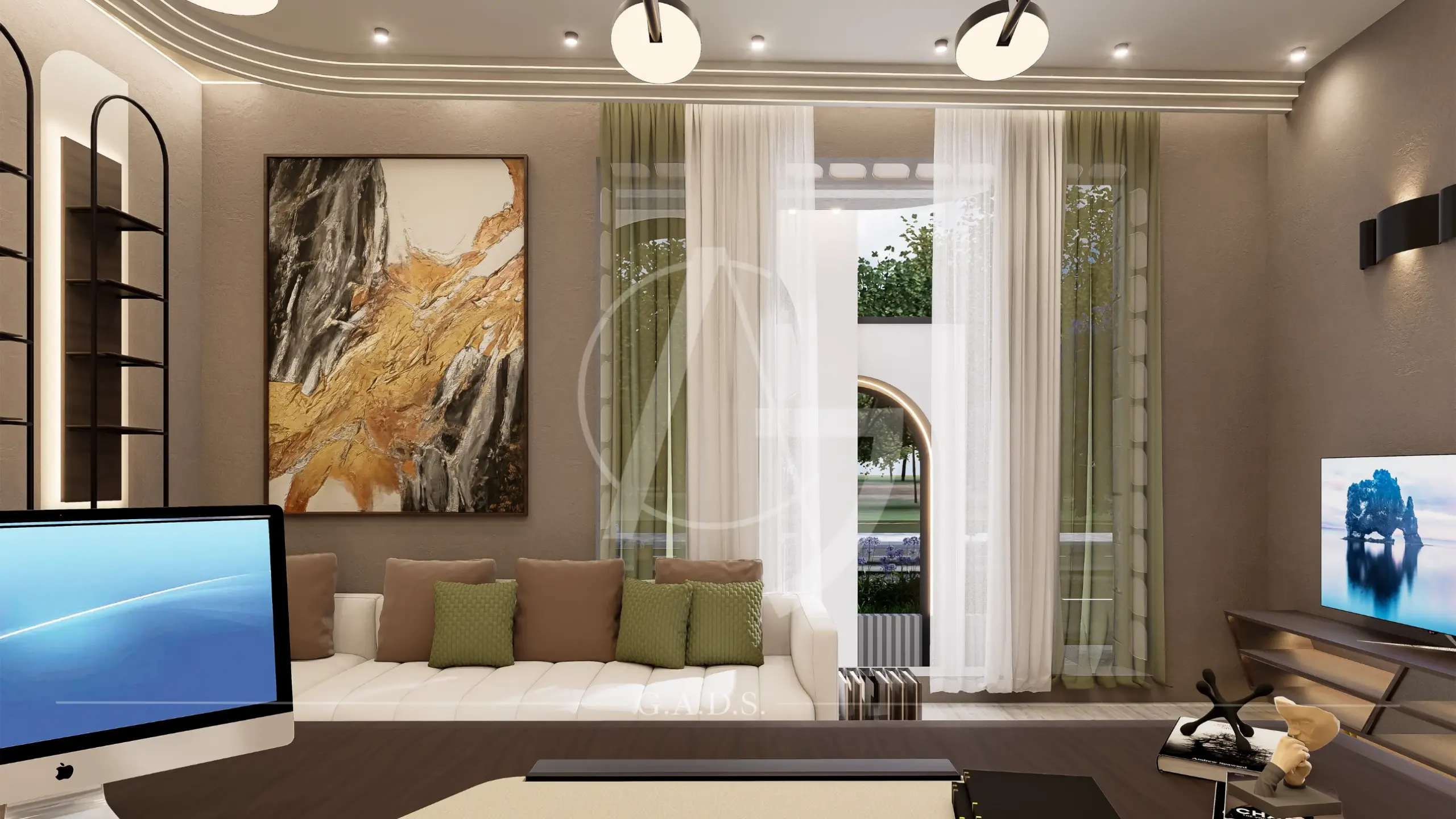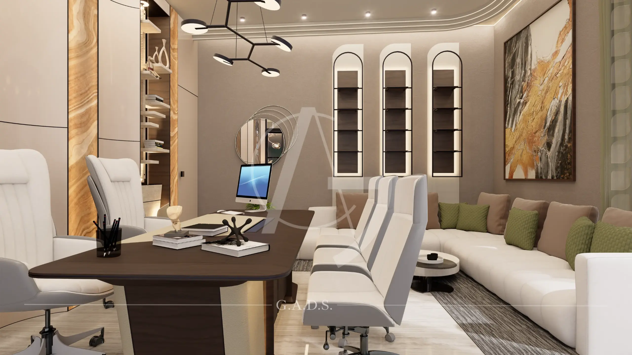 Designed as an exclusive and iconic property office, this single-storey structure redefines grandeur through strong architectural expression. Bold curves, layered arches, and vertical elements enhance its visual height, creating a commanding presence despite minimal ground coverage.