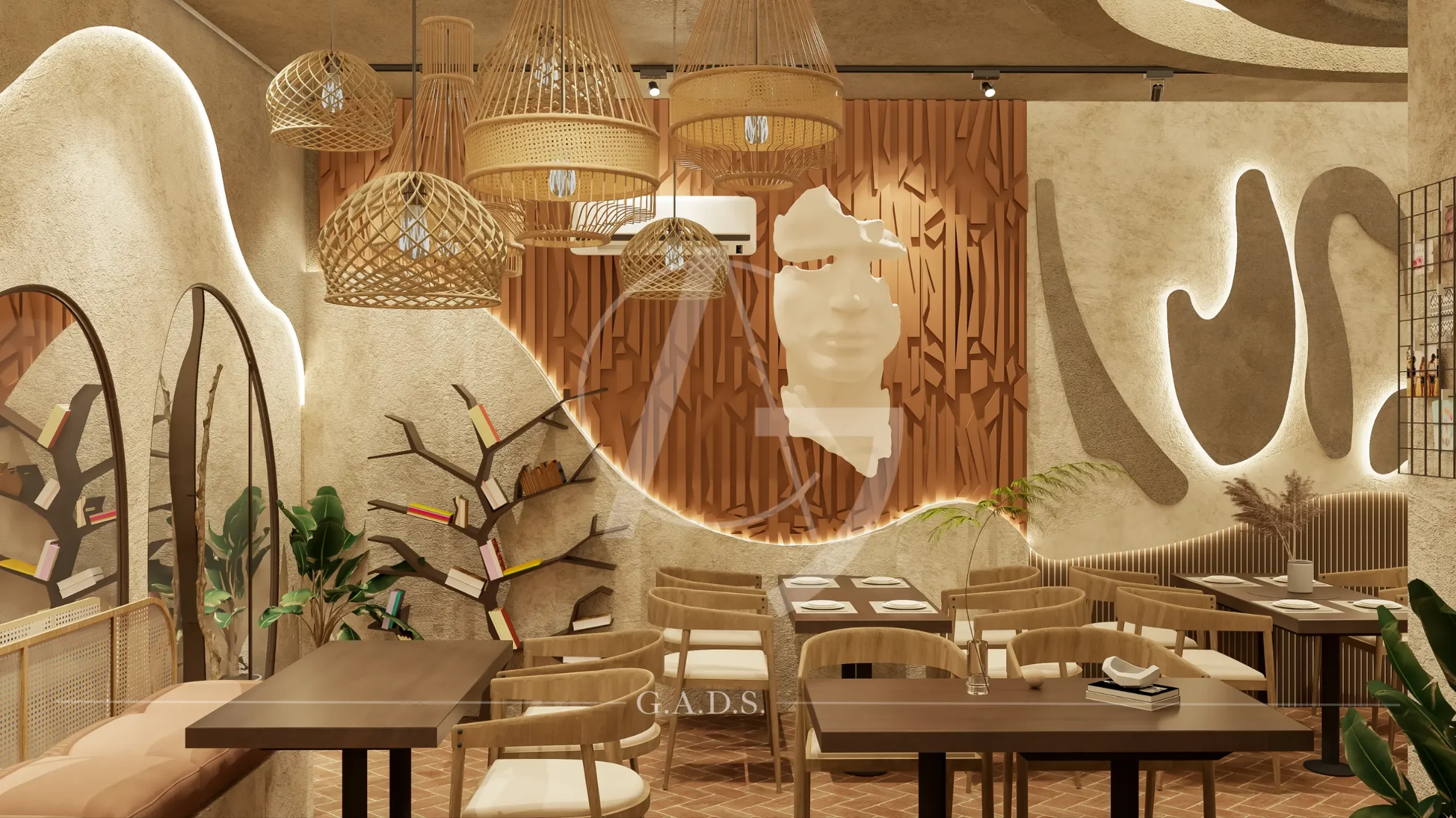 The space balances comfort with character. Organic forms replace rigid lines, while warm lighting and natural materials create a cozy, grounded feel. Every corner has been thoughtfully designed to catch attention without overwhelming, making the café both calming and visually distinctive.