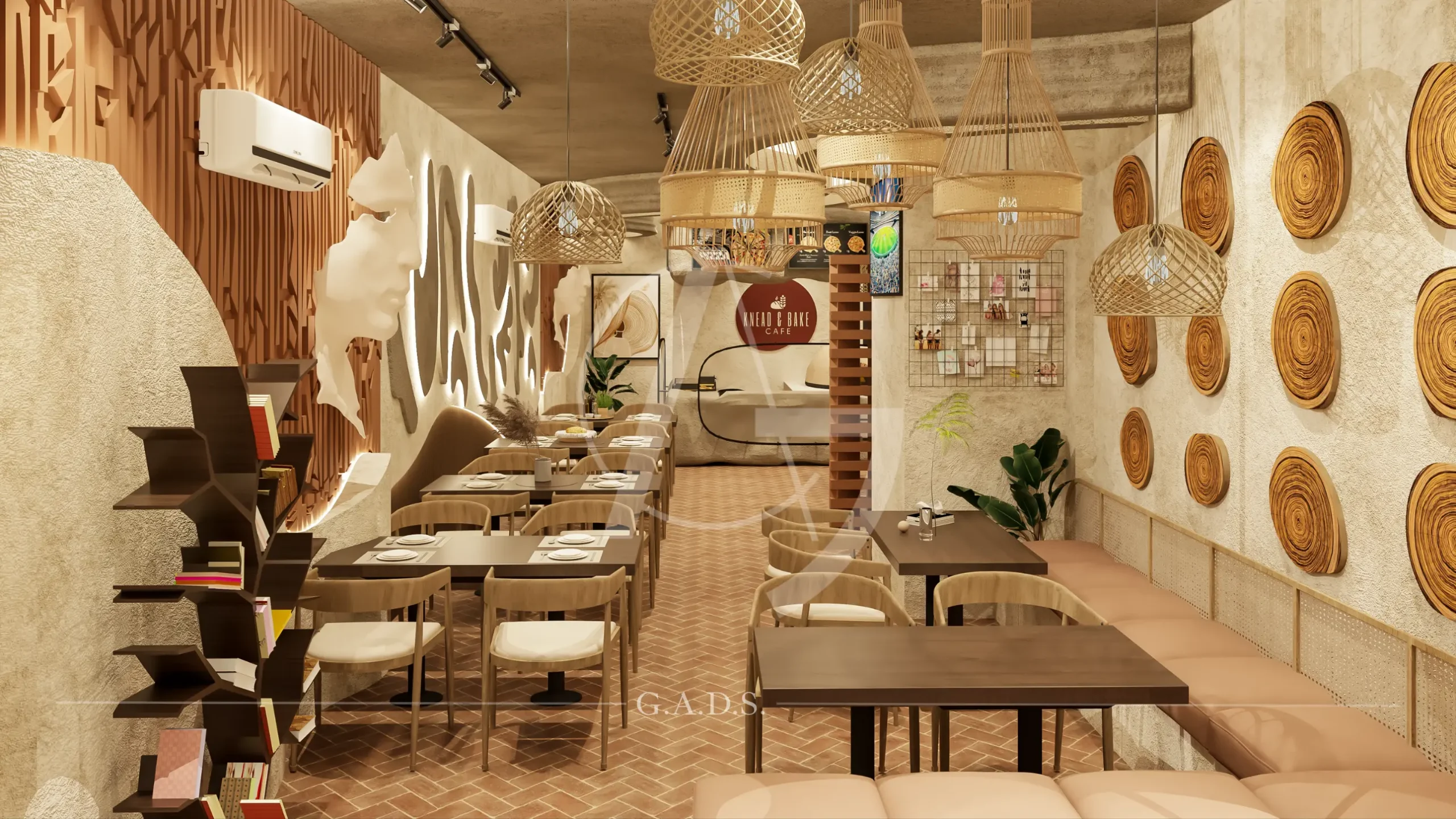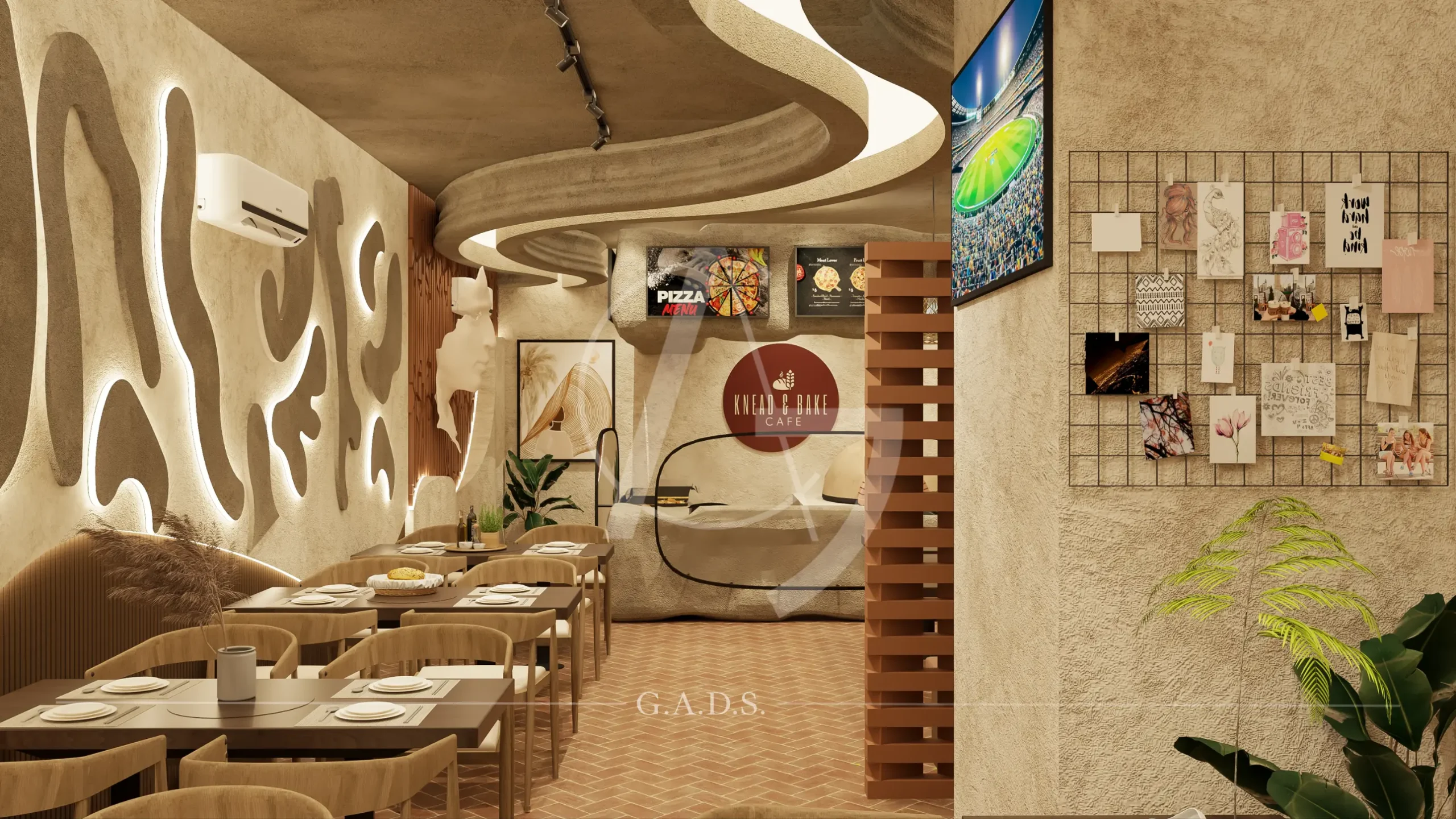 Knead & Bake Café is designed as a warm, immersive space that feels inviting from the moment you step in. The idea was to create a café that people don’t just visit—but spend time in, explore, and remember. Soft curves, earthy tones, and layered textures come together to build a relaxed yet visually engaging environment.